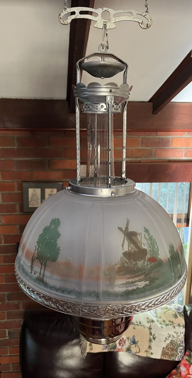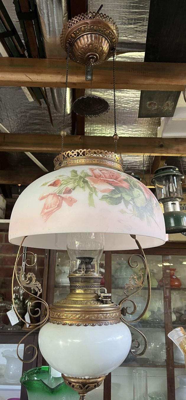 Hello Kaye, a couple of months ago I bought a hanging oil lamp from you. It was a rainy day so I parked in your driveway. I was driving an old 1960’s Jaguar to jog your memory 😊 I repainted all the metalwork including the counter weight, had it wired for electricity and today the electrician installed it. Over the moon with it so thank you very much. Kind regards Grant Perth 07/10/2025