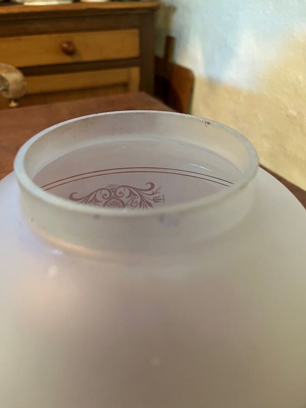 Shade has a few ‘nibble bites’ on the base of the lamp but these would not be seen once in shade holder, please check out photos.