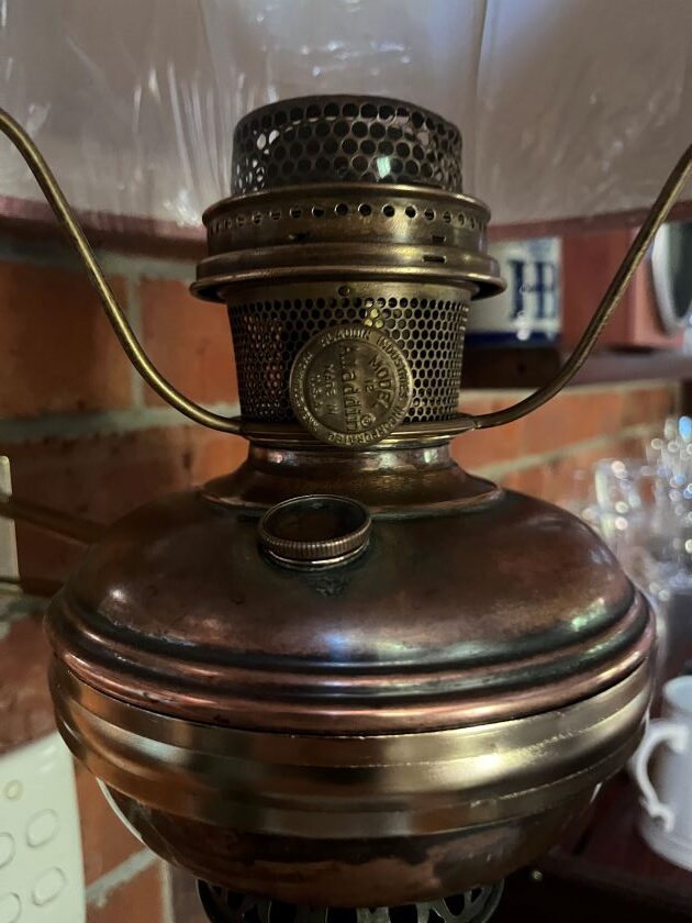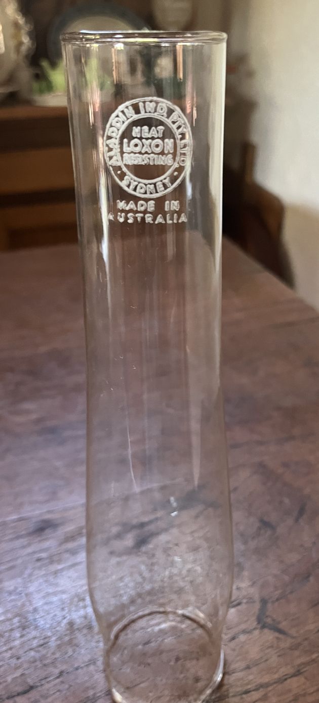 This Aladdin lamp has a No. 12 Nashville burner fitted which were imported to Australia c 1949. These burners are considered rare in the USA and are eagerly sought after.