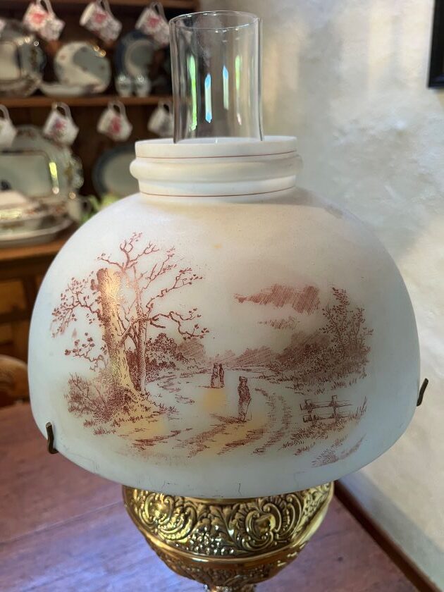 Original Miller shade with transfer tree pattern, new wick and chimney.