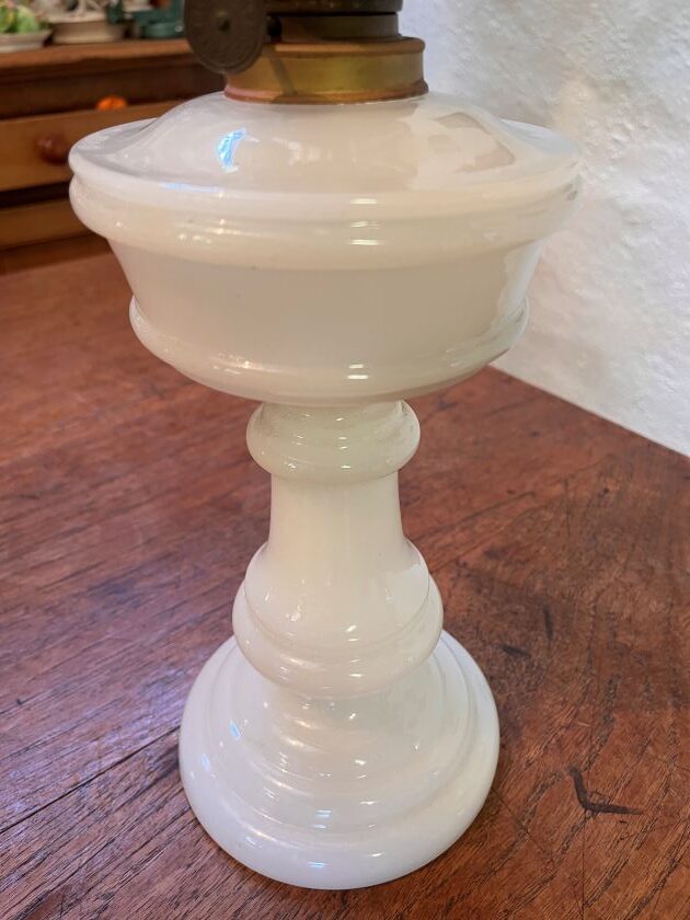 Bismark opal table oil lamp with an original Brenner burner c1910.