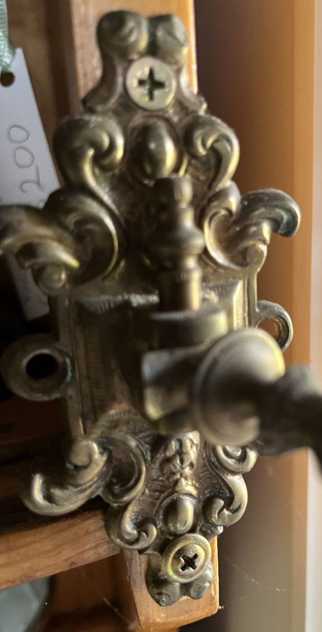 The matching brass scones are decorated with a traditional embossing and are robust with a wonderful patination. the pegs have been engineered to fit snugly in the cups, both lamps have new Kosmos chimneys and wicks.