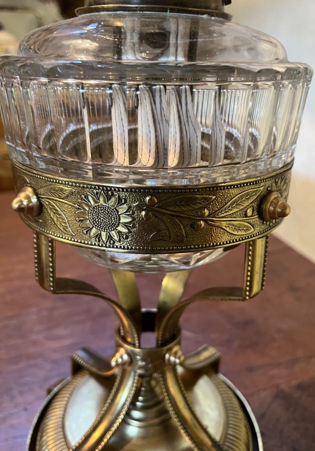 Unusual Hinks marked brass table lamp c1895, crystal cut font