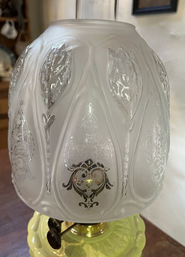 Victorian lamp unusual white porcelain font with lime green glaze